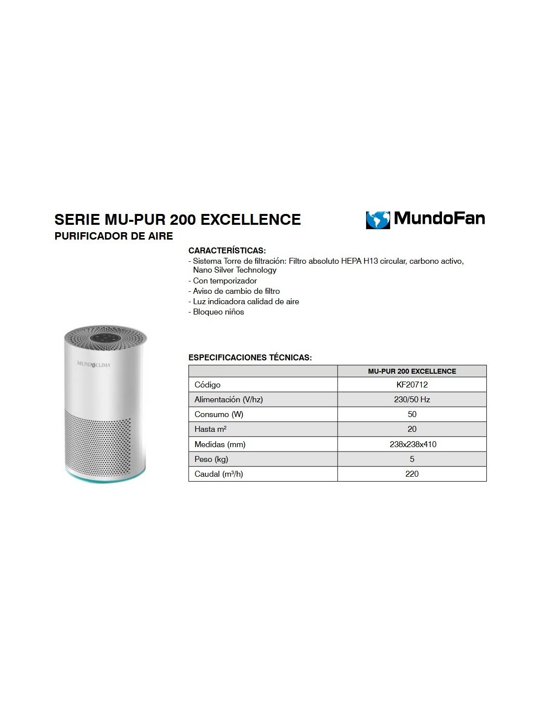 PURIFICADOR AIRE EXCELLENCE CFILTRO HASTA 25M2 MU-PUR 200